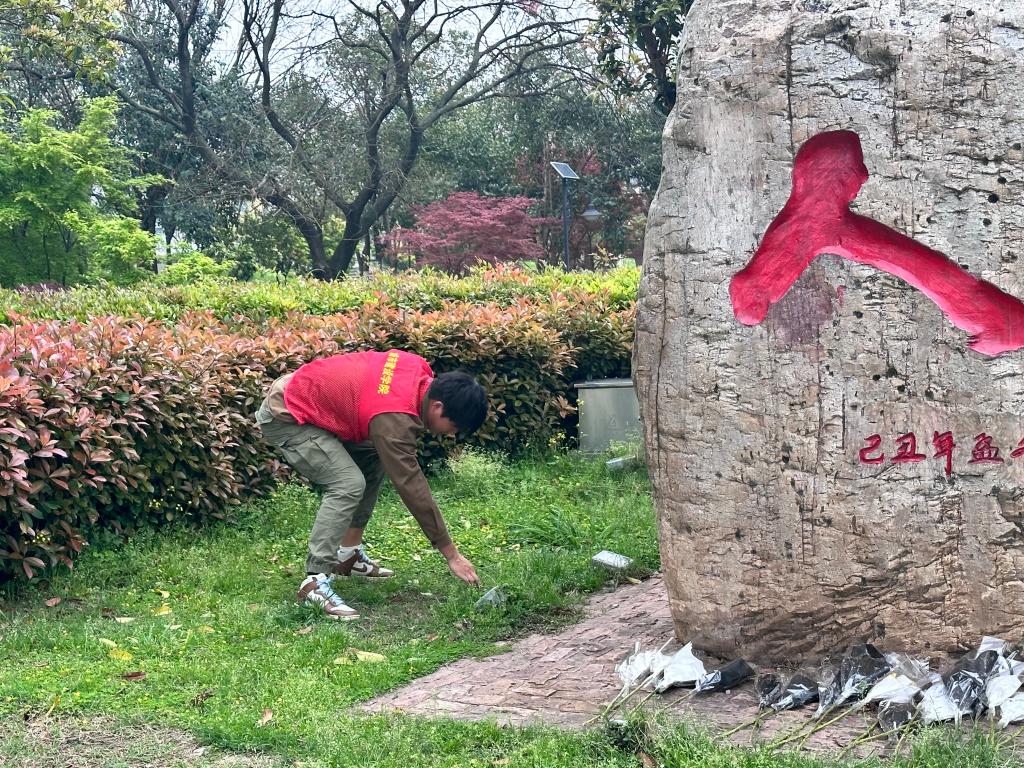 中午12时许,师生从东校区前往荆江大堤宝塔湾”人链“纪念碑前。到达纪念碑现场后,同学们首先仔细清扫了周围的环境,随后,学院团委副书记刘安琪带领同学们面向纪念碑默哀一分钟,缅怀英雄,寄托哀思。最后,在庄严肃穆的氛围里,城建学院学生代表向“人链”纪念碑献花,深切悼念陈及时、何方旭、方招三位烈士。