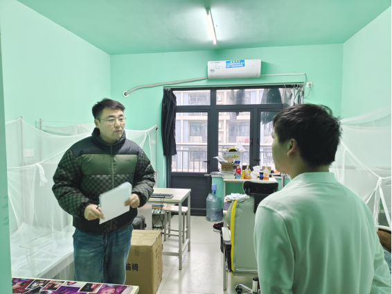 为保障寒假前后学生的安全, 2024年1月19日下午,各年级辅导员及班主任走进学生宿舍,认真查看离校前宿舍卫生整理和断电情况,与暂未离校的同学进行谈话交流,表达对学生的关心,了解学生的实际诉求,对返乡等交通安全事宜进行温馨提醒,鼓励学生寒假期间制定合理的计划,坚持良好的学习和生活习惯,不断提升完善自我。