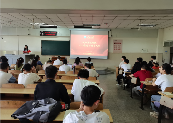 于12教202教室举办2024届考研动员分享会,城建学院副院长张继承、院党委副书记秦良斌、学工办主任周洁如、就业专干胡冰恒、三位学生代表及2024届考研学生参与本次会议。会议由兼职辅导员江子航主持。