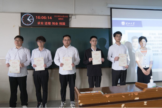 的赵云峰老师和折海成老师作为本次跨学科学术交流的嘉宾分别对五位主讲人的报告进行了细致的点评并且给予了中肯的建议,在场的同学也收获良多。随后康玮老师和魏民生老师共同为五位主讲人颁发“优秀主讲人”证书并合影留念。