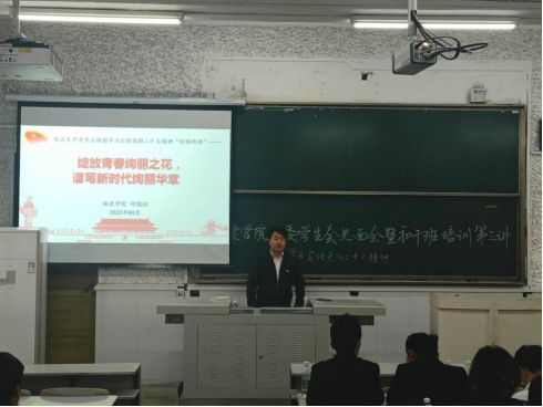 (通讯员 张剑琳 郭甲堃)绽放青春绚丽之花,谱写新时代绚丽华章。为进一步提升城建学院学生干部的思想水平与执行能力,4月6日下午,学院在西校区3教T1教室面向主要学生干部进行党的二十大精神宣讲,长江大学青年宣讲团成员、院团委副书记何儒权对党的二十大精神进行了宣讲,党建就业专干胡冰恒、22级辅导员杜琛、第十九届团委学生会全体成员、22级初干班学员及青马学习小组参加本次培训。
