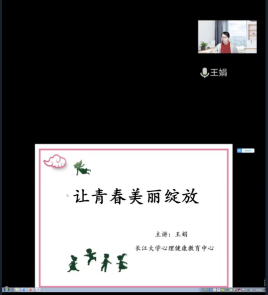 举行“让青春美丽绽放”线上讲座,心理健康中心王娟老师为主讲人,学工办主任周喆主持本次讲座。