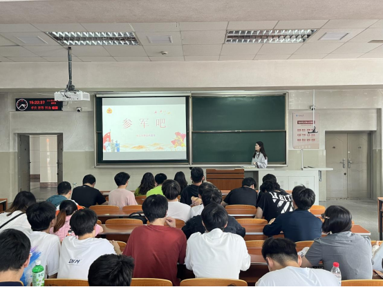 2022届毕业生代表在5月25日下午在22栋A124参加2022届毕业生座谈会,座谈会中对国家征兵政策进行了宣传。其他年级有参军意向的在校生于26日下午15:20在主教22栋A124参加此次征兵宣讲会,宣讲会由学院征兵专干刘安琪主持,征兵宣讲员崔万丰、蒋志兵进行相关宣讲。