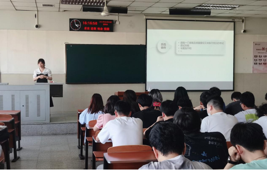 会议伊始,周喆老师由大学生的压力事件引入,讲解了压力的概念;紧接着,她将压力源和个体结合,从生理和心理两个层面分析了压力产生时的表现,并且分享了应对压力的解决办法。会中周喆老师着重指出,压力的影响并非全是消极的,它是由我们的心态决定的,当我们改变对压力的看法时,其会对个人身心产生正面效益。此外,周老师还强调了学生骨干在面对学生群体心理问题应当担起责任,做好倾听者,面对问题要及时发现,及时上报,及时解决。最后,她展示了我校心理健康教育的四级网络体系,介绍了心理健康教育中心的排班时间与电话,希望学生们能够选择正确的方式应对心理问题,更好的面对压力,促进自身成长。