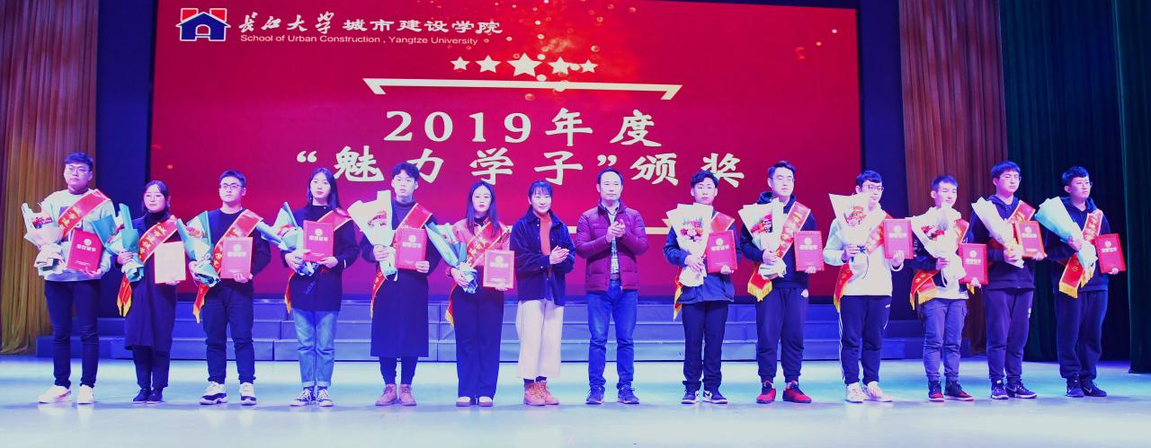 2019年度“魅力学子、魅力班级”颁奖典礼暨元旦文艺汇演在东校区大礼堂隆重举行,荆州市自然资源和规划局副局长余桥先生等企业领导、长江大学副校长周思柱老师,长江大学党委研究生工作部副部长兼研究生院副院长毛德波老师、长江大学党委学生工作部部长徐波老师、长江大学党委学生工作部副部长张涛老师、长江大学团委副书记张娟老师,以及城建学院所有领导和老师共同观看了此次汇演。