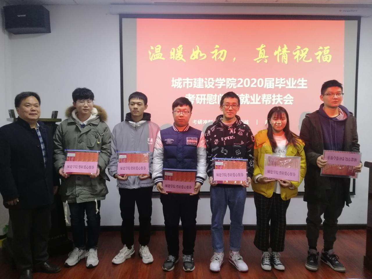 2020届毕业生考研慰问暨就业帮扶会”。学院党委书记孙涛老师、院长曾磊老师、学院党委副书记周俊老师、副院长肖桃李老师,还有毕业班班主任、就业指导老师及2020届毕业生代表参加了此次会议。会议由学院学工办主任周喆老师主持。
