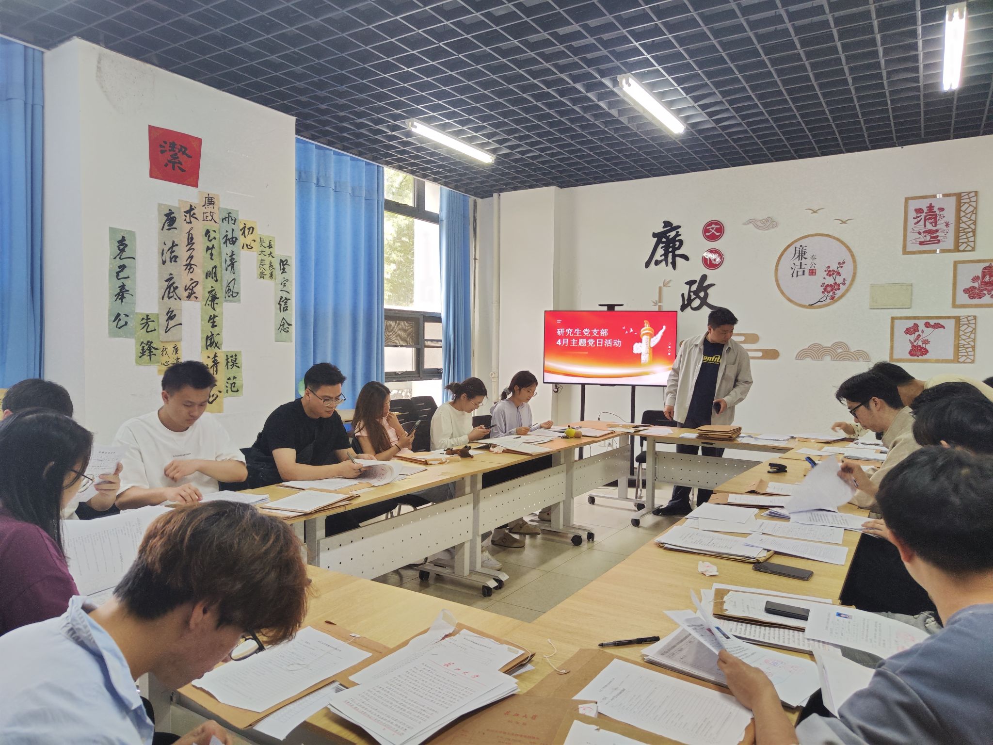 (通讯员 秦源)为深入学习贯彻习近平新时代中国特色社会主义思想,切实提升研究生群体政治理论素养,4月21日下午,学院研究生党支部在22栋124会议室开展4月主题党日活动。活动由研究生辅导员盖东芳主持。